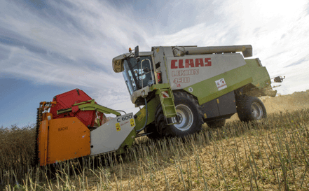 Für den Drusch von Ölfrüchten wie Raps kann an dem Getreide-Schneidwerk eine Verlängerung, der sog. "Rapstisch", montiert werden. Dieser fängt die leicht ausfallenden Rapskörner auf und leitet sie in den Drescher.